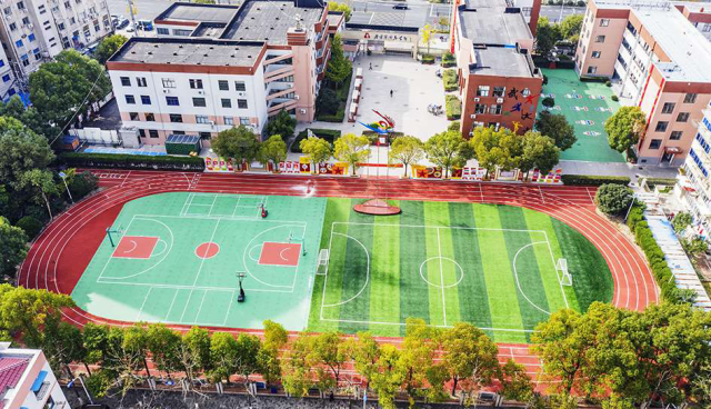 学校运动场地改造工程是我区教育年度重点工程。2023年,区财政共投入约1700万元专项资金用于学校运动场地改造项目,涉及平潮高中、西亭初中、金沙小学、高新区小学、川港小学等14所中小学校,改造田径场10片、篮球场12片、排球场1片、室内外运动场地2200平方米,所有项目均已顺利完工。图为改造后面貌一新的金沙小学运动场地。