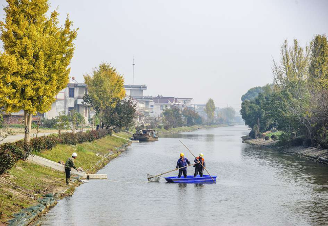 十总竖河属区管二级河道,是遥望港重要支流,也是引排、灌溉的重要河道,被列入省级骨干河道名录。2023年,我区投入800万元实施十总竖河生态河道建设,整治河长2.9公里,新建生态组合桩板护岸、混凝土桩板护岸、木桩生态护岸共计5.3公里,绿化19915.5平方米,目前十总竖河生态河道建设已完成。图为岸西村抓好十总竖河长效管理,扎实巩固生态河道建设成果。