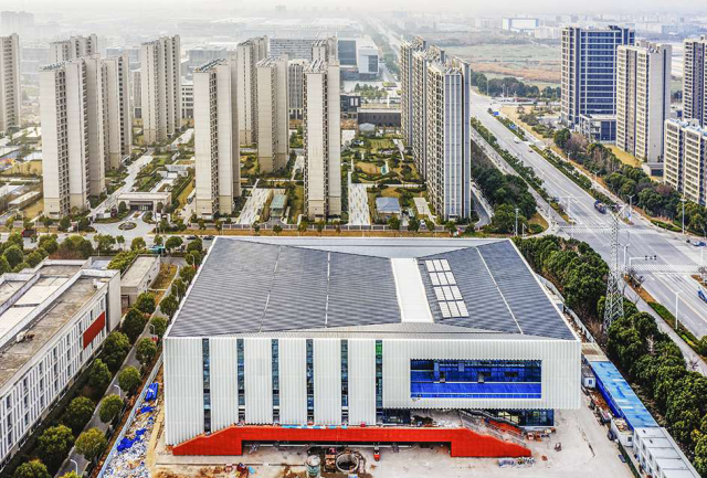 金沙湾文体中心体育馆项目位于通州高级中学北侧,总规划面积约2万平方米,为丙级、中型体育馆,具备举办地方性、群众性运动会的条件。主馆为竞赛馆,副馆为训练馆,总座席数近3000座。项目预计2024年4月竣工交付,6月投入使用。