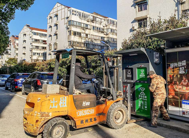 近年来,我区高度重视垃圾分类这项民生“关键小事”,深入推进垃圾分类体系化建设,聚焦投放、收集、运输、处置全环节,按照全品种、全过程、全链条要求,不断加大投入,规范源头到末端的分类设施设备配置,加强硬件基础设施建设,基本实现了分类垃圾的全链条处置。图为工作人员在瀚学苑西区放置垃圾分类设施。