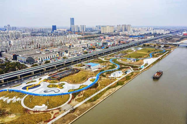 通吕运河(通州段)两岸整治提升启动区一期核心区项目西起世纪大桥,东至金沙湾大桥,北邻江海大道高架,南至通吕运河,总投资3501万元,建设广场、慢跑道、骑行道、建筑小品、观景平台、城市驿站等,形成滨河环状绿道,充分满足了群众休闲游憩和滨水赏景的需求。