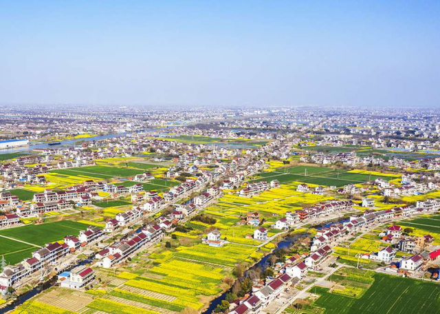 麦苗青青菜花黄,通州乡村春色美,充满人与自然和谐的诗意。图为无人机拍摄的金新街道进东村美丽田野。