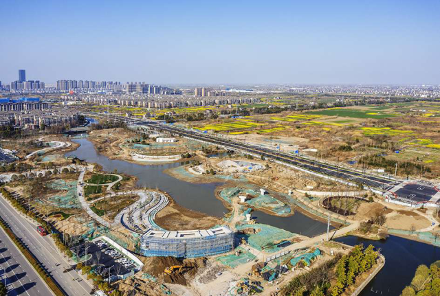 在金沙湾新区,金乐公园景观正在加紧建设中。金乐公园景观项目南至文贤路,北至人民东路,东至金乐路,西至金汇路,总面积约39.1万平方米,绿化面积约28.1万平方米,水域面积约11万平方米。