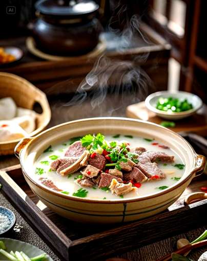 细究兴仁羊汤,实在没什么“拿得出手”的家底。往南,苏州藏书羊肉有几百年光景,明清便有“冬至羊羹满市香”的说法,老松木灶熬汤,守着那份“白汤、白切、白米酒”的江南温婉;向东南,海门山羊肉顶着地理标志,浓油赤酱炖得酥烂,向来是宴席上的硬菜;即便是南通城里,老卤店也凭“祖传配方”拴住老食客。可兴仁羊汤呢?无金字匾额,无“百年传承”噱头,菜单都随性——墙上没几道固定菜,老板只凭当日鲜材招呼:“今天刚宰的羊,羊脑、羊蹄都鲜着,试试?”它能扎进南通人心里,全靠食客口口相传,像邻里传好消息般,一年年渐渐成了冬日牵挂。