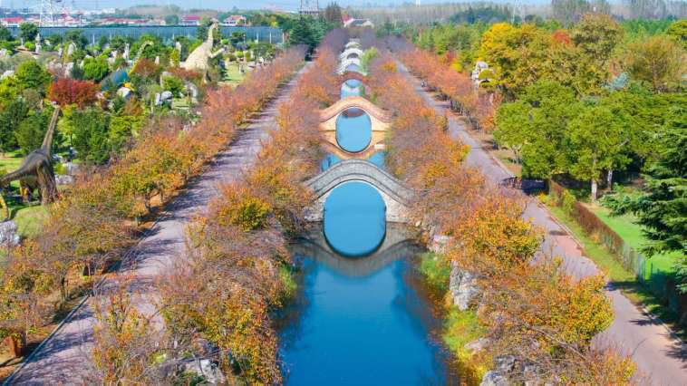眼下,位于开沙岛的洲际梦幻岛仿若被打翻的调色盘,处处色彩斑斓,既有古韵悠然的桥河胜景,又有充满趣味的游乐设施,为这片静谧增添了灵动与趣味,宛如童话世界,引人入胜。