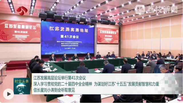 信长星、刘小涛认真听取发言,对大家的前瞻思考、真知灼见给予称赞。信长星说,这次会议既是学习领会党的二十届四中全会精神的一次交流研讨,也是对江苏“十五五”发展的一次高水平建言献策。省有关部门对大家的发言和会议交流成果要仔细梳理、认真研究,吸收到规划《建议》起草和《纲要》编制中。