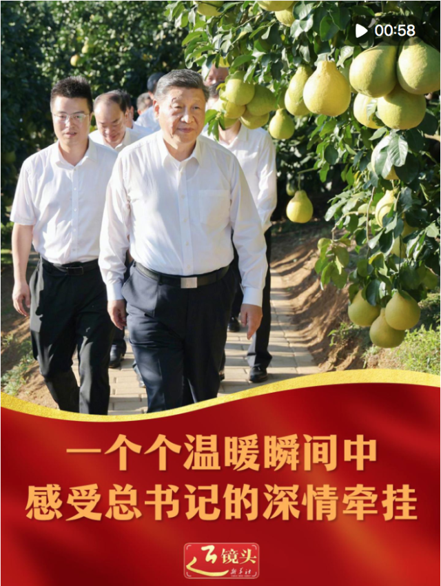 11月7日,习近平总书记在广东省梅州市梅县区雁洋镇考察南福金柚种植基地,了解当地推进乡村全面振兴等情况。正值丰收时节,南福村黄澄澄的柚子挂满枝头,总书记走进柚子林,同乡亲们亲切交流。