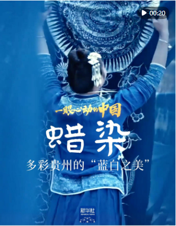 蜡染是用蜡刀蘸熔蜡绘图案于布后以蓝靛浸染