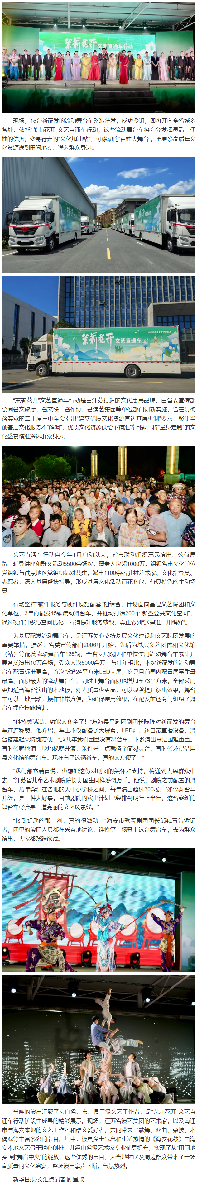 9月9日晚,夜色中的南通海安市谭港村大舞台灯火璀璨,观众笑语飞扬,“茉莉花开”文艺直通车惠民演出在这里热烈举行,为当地村民带来一场文化盛宴。