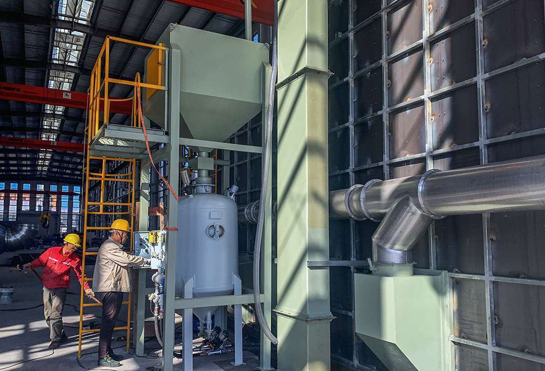 南通弘峰机电有限公司新建的智能仓储装备项目现场,工人们正进行设备安装。 卑多敏 摄