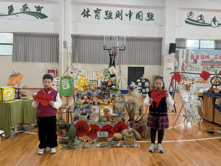 丰收节主题展也精彩纷呈。三年级以“秋实满仓 乐享丰收”为主题,通过“实物+场景+观察记录+互动体验”的形式,将农耕知识科普与多感官参与深度融合,让学生在触摸与探索中感知丰收。四五年级的“融情耕读 美创无界”展评独具匠心,以旧物焕新与农耕未来创想两大方向,结合劳动、创意、环保与科技元素,创作出跨学科融合的作品。各班解说员现场讲解展品故事与农耕知识,学生孟子涵作为讲解员自豪地说:“活动让我认识了各种农作物,真正懂得了‘谁知盘中餐,粒粒皆辛苦’,我今后会更加珍惜粮食。”