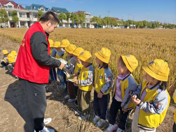 稻浪翻“金”好“丰”景。日前,先锋街道苏家埭村新时代文明实践站携手先锋志新幼儿园的孩子们一同走进希望的田野,共同体验收获的喜悦与劳动的甘甜。