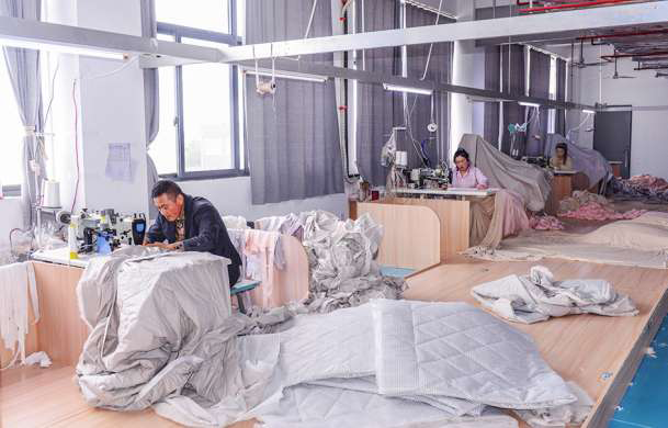 郎氏是一家专业生产、销售天然羊毛、羊绒纺织品的企业,原先在河北主要从事羊毛原料供应,向一些羊毛被生产企业提供原料。2009年,郎氏进行战略调整,在川姜镇成立南通郎氏纺织科技有限公司,直接生产成品。“当时羊毛被是家家必卖的产品,量也特别大。但是我来了以后发现这个行业有些地方让人不太满意,许多人在做‘减法’,成本一味地降低,导致品质也降低,而且是没有标准可循的。”郎振朝说。