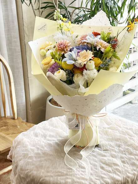作为一名花艺人,孙晓玉喜欢研习多元化的花艺技法,每到一个城市旅游,她都会去当地花店“偷师”,并将技法融入店内的每一束作品之中,让这个藏在市井里的花店始终涌动着鲜活气息。“花束是有内涵的,我觉得不仅仅是大家固有印象中的热烈、浪漫,其实还有更多个性化的东西,所以色彩运用上可以更大胆,暗黑色系甚至全白都可以经过设计营造出浪漫的氛围感。”在这里,孙晓玉将顾客的喜好与创意完美融合,打造出独一无二、充满个性的花艺杰作,也展现出花艺的“更多可能性”。
