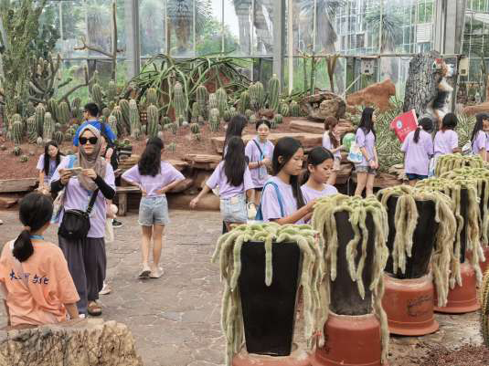 师生们首站来到南通洲际绿博园,在讲解员的带领下走进自然课堂,近距离观赏来自世界各地的珍稀植物,在轻松愉悦的氛围中增长见识、收获乐趣。
