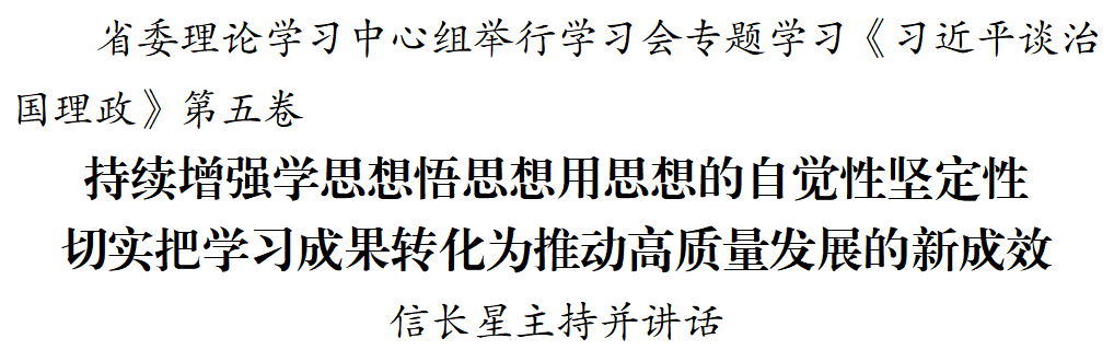 交汇点讯 10月10日,省委理论学习中心组举行学习会,专题学习《习近平谈治国理政》第五卷。省委书记信长星主持学习会并讲话。省委常委作了交流发言。