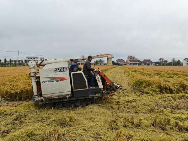 育民村现有耕地6200亩,其中已有94.5%完成高标准农田建设。朱将林介绍:“我们在2018年成立了育民合作农场,目前除了300亩土地,其余都已流转给村里的大户了。今年水稻亩产大概1000到1200斤,小户基本收完了,大户半个月之内也将全部收割完成。”