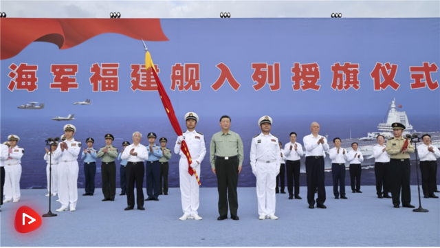 我国第一艘电磁弹射型航空母舰福建舰入列授旗仪式5日在海南三亚某军港举行。中共中央总书记、国家主席、中央军委主席习近平出席入列授旗仪式并登舰视察。